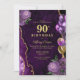 Elégant or violet Floral Agate 90e fête d'anniversaire Invitation. L'invitation du 90e anniversaire présente des ballons de parties scintillant violet et or et de délicats floraux de rose lilas violet avec des taches d'or.