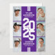 Les invitations modernes à la fête sportive violette avec un plan de classe attrayant année dans une police variée, un collage photo des grades, deux rayures blanches, leurs noms, école/université, et un modèle de célébration double facilement personnalisées, ces invitations sportifs feront de votre fête une fête mémorable.