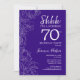 Purple Surprise 70e anniversaire Invitation. Le minimaliste design féminin moderne présente des accents botaniques et des caractères typographiques. Carte invitation florale simple parfaite pour une célébration anniversaire surprise femme élégante. Invitations Zazzle imprimées ou téléchargement instantané modèle imprimable numérique.