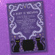 Cute Witch A Baby is Brewing Halloween Baby Shower invite features adorable illustrations of black cats, a cauldron, and stars against a purple background.