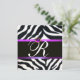 Invitation PURPRE NOIR BLANC FOURRURE ZÈBRE MONOGRAMME , amét