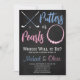 Les mignons putters et perles de sexe révèlent les invitations à la fête. Un design unique avec un sac de golf bleu et des clubs avec perles blanches sur un arrière - plan de tableau noir.