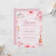 Surprenez vos proches avec cette invitation d'enterrement de vie de jeune fille élégante, avec un fond rose, pyjama aquarelle, prosecco et détails modifiables. Personnalisez-la facilement en cliquant sur l'option "personnaliser".
