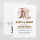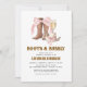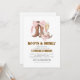 Célébrez l'amour avec une touche élégante sur le charme occidental avec nos Bottes de Bow Rose & Bubbly Western Bridal Shower Invitation. Avec une combinaison ludique d'arcs roses, de bottes de cow-girl et d'accents mousseux de bulles, cette invitation mélange parfaitement l'élégance rustique avec l'atmosphère amusante. Idéal pour une douche nuptiale dans un thème champêtre ou occidental, il prépare le terrain pour une célébration mémorable. Invitation tes invités à trinquer la future mariée dans le style cowgirl avec cette invitation unique et charmante !