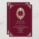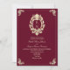 Elégante faire-part de mariage baroque bordeaux et or avec crête monographique ornée sur l'avant et code QR moderne RSVP sur l'arrière. Un mélange parfait de luxe et de commodité, cette invitation est idéale pour les mariages formels. Personnalisez facilement avec vos noms, date et site Web mariage. Les clients peuvent se rendre rapidement en scannant le code QR, en gardant l'organisation de votre événement dans le style.