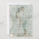 Coastal tropical ocean beach sage green photo overlay wedding invitation featuring hand drawn sea horse, starfish and ocean corals and a chic whimsical retro vintage tan handwritten calligraphy script. +++++++++++ Personalize it with your text, 3 custom photos, and your QR CODE to the wedding website to rsvp online.