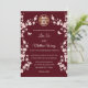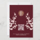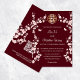 Ce faire-part de mariage chinois moderne présente des branches de fleurs de cerisiers roses poussiéreuses, deux papillons et un double symbole de bonheur doré sur un arrière - plan rouge vin foncé. Avec un code QR scannable à l'arrière. Il est parfait pour un mariage fusion asiatique, un mariage qui combine des éléments de différentes cultures asiatiques, les fleurs de cerisiers japonais, le symbole chinois du double bonheur et les tons rose, or et mauve indiens.