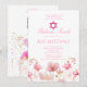 Elegant pink floral Bat Mitzvah invitation featuring a Star of David and watercolor flowers. Perfect for celebrating a girl's special day in style with a modern and feminine design.
