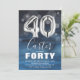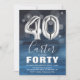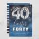 Invitation moderne à la fête du 40e anniversaire conçu avec un arrière - plan bleu aquarelle, confetti de bulle transparente, et grand nombre d'argent quarante ballons d'hélium. Le nom est écrit dans une grande élégante calligraphie texte blanc avec un simple modèle d'anniversaire en dessous qui est facile à customiser. Arrière - plan rayé aquarelle à l'envers.