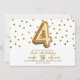 Invitation Quatre 4 Gold Balloon & Confetti 4e fête d'anniver