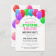 Des ballons colorés et des accents roses et verts décorent cette invitation parfaite pour une 4ème fête d'anniversaire. Chaque champ est entièrement personnalisable pour dire exactement ce que vous voulez!