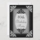 Invitations personnalisées de célébration de fête d'anniversaire de la coutume des femmes ou des hommes quatre-vingtième. Belle, fleurie double femme dégrossie noire et argentée ou invitations formels de l'homme pour quatre-vingts ans/80 années de fêtes d'anniversaire. Décoré sur le dos avec chic, images noires imprimées fascinantes de tapis de dentelle et de perles pour vos détails des textes. Invitations chics, chiques, élégantes avec des couleurs à la mode et à la mode. Celles-ci sophistiquées, de jolis invitations sont décorées/imprimées des deux côtés. NOTEZ SVP : Toutes les invitations sur Zazzle ont des images imprimées d'appartement. Artwork©delightful-doodles.com original. Tapis de perle par le ©Hazel Kinvig-Paul www.design-a-dream.co.uk. Si vous avez besoin de n'importe quelle aide customisant votre produit svp me contactez par mon magasin et je serai heureux d'aider.