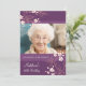 Quatre-vingtième invitations de photo de fête d'anniversaire de coutume dans le pourpre foncé élégant et moderne, le rose de corail de pêche et le blanc avec le motif floral de fleurs japonaises sensibles. Personnalisez ces invitations avec votre propres photo et texte de créer une invitation véritablement unique de célébration d'anniversaire.