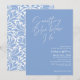 Donnez le ton pour une fête chic et intemporelle avec cette invitation à la douche nuptiale "Quelque chose de bleu avant moi" ! Avec ses élégantes teintes bleues, ses flores délicates et sa typographie sophistiquée, cette invitation est parfaite pour honorer le futur marié dans le style.