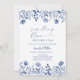 Cette élégante invitation à la douche nuptiale présente des fleurs d'aquarelle peintes à la main en bleu poussiéreux.
