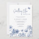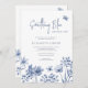 Elégant botanique douce bleu poussiéreux fleurs sauvages et papillons ressort l'invitation de la douche botanique nuptiale dans une palette de couleurs pastel délicat avec le blanc.