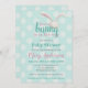 Quelqu'un est en route, baby shower invitation pour votre petite fille ou petit garçon. Cute lapin sur des points de polca en menthe et rose, simple et moderne.