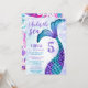 Invitation Queue de sirène en violet + Aquarelle Turquoise An