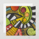 Peinture aquarelle contemporaine avec un style abstrait graphique et impressionniste dans des couleurs d'automne en gras. Possède une touche d'influence tribale avec des marquages modernes et des sujets non représentatifs. Moderne, tout en appelant l'imagerie et les symboles anciens.