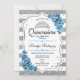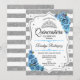 Invitation Quinceanera - Bleu des bandes argentées blanches