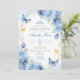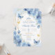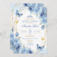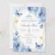 Invitation Quinceañera Blue Floral Gold Frame Papillon Couron