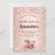 Un arrière - plan rose à dégradé d'or décoré de faux étincelles, de confettis et d'un chariot vintage romantique. Personnalisez et ajoutez son nom, les détails de la fête.