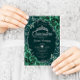 Émeraude vert et argent Quinceanera invitation de célébration. Caractéristiques, police de script, papillons, roses d'aquarelle et tiara. Parfait pour une élégante célébration de glamour de style princesse. Personnalisez avec vos propres détails. Invitations Zazzle imprimées ou téléchargement instantané modèle imprimable numérique.