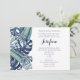 Une belle sélection de feuillage tropical monochrome bleu à l'aquarelle avec des palmiers et des feuilles de monstera. Facile à personnaliser avec les informations de votre fête. Fait partie de notre collection 'Feuillage tropical bleu'.