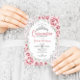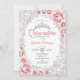 Invitation à la célébration de Quinceanera en argent rose. Caractéristiques, police de script, papillons argentés, roses d'aquarelle et tiara. Parfait pour une élégante célébration de glamour de style princesse. Personnalisez avec vos propres détails. Invitations Zazzle imprimées ou téléchargement instantané modèle imprimable numérique.