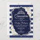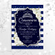 Invitation à la célébration de la Quinceanera blanche en argent de la Marine. Caractéristiques marine rayures blanches, police de script, roses blanches, tiara et confetti. Design élégant avec fausse parties scintillant argent. Parfait pour une élégante célébration de glamour.