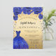 Invitation Quinceanera robe royale bleu or fleurons luxe