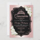 Invitation à la célébration de la Quinceanera en or noir blanc rose. Caractéristiques police de script, roses blanches, tiara et confetti. Design classique avec fausse parties scintillant rose or. Parfait pour une élégante célébration de glamour.
