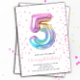 Invitation Rainbow Balloon 5th Birthday Girl Party Numéro