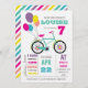 Girls Rainbow Bicycle Birthday Party Invitation Cruiser Bike Birthday Invite