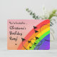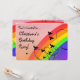 Arc-en-ciel s'envole à travers le ciel dans un spectre de couleurs vives. Idéal pour une fête d'anniversaire sur le thème arc-en-ciel d'une petite fille. Oiseaux volant contre un ciel rose vif.