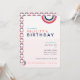 Célébrez votre douce avec cette invitation de fête moderne et amusante avec des arcs-en-ciel. En corail, bleu, rose et turquoise, cette invitation est parfaite pour les fêtes du printemps et de l'été. Tout le texte est personnalisable. Une partie d'une collection de Parcel Studios.