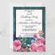 Turquoise, grunge aquarelle invitation fête d'anniversaire avec roses roses roses et feuilles verts.