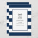 Cette élégante, audacieuse et moderne carte "Save the Date" de mariage à rayures bleues marine et blanches est extrêmement tendance. Avec un encart blanc bordé de bleu marine, le texte est écrit dans la police sans serif la plus populaire de l'histoire. Le verso de la carte présente les mêmes rayures horizontales bleues marine et blanches audacieuses que celles qui figurent sur le recto. L'invitation parfaite pour la mariée exigeante, et faisant partie d'une suite d'invitation - consultez ma boutique Zazzle.
