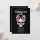 Invitation Rayures d'arc de crâne Rose Horreur Fête d'Hallowe