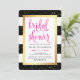Ces invitations nuptiales élégantes de douche comportent les rayures noires et blanches, avec une frontière d'or de faux et des confettis assortis d'or de faux. La typographie moderne rose-foncé ajoute un autre peu de style à la mode.