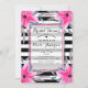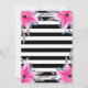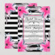 Invitation Rayures noires et blanches Fleurs roses Botanique