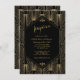Invitation de réception de mariage vintage Art Déco Gatsby le Magnifique. Un design de carte inspiré des années 1920 noir et or présente une fausse fleur de lys en feuille d'or, beau style géométrique de l'Art Déco. Utilisez l'outil de personnalisation pour ajouter vos informations. Voir, également, ma collection de mariage vintage Art Déco Gatsby le Magnifique.