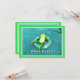 La grenouille verte lunatique s'étend dans un anneau de bain flottant dans une piscine de l'eau bleue fraîche. Rayures vertes et blanches d'accent. Customisez-le avec vos détails personnalisés de partie sur le dos. Perfectionnez pour une réunion de barbecue ou de famille d'été, ou pour des cocktails avec des amis. Invitations d'été d'amusement des expressions de papier.
