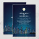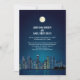Ceci est une invitation de mariage pour une réception uniquement pour ceux qui auront une cérémonie privée ou une fugue dans n'importe quelle ville. Cette invitation présente une skyline de ville par une nuit étoilée avec la lune se levant au-dessus des détails de l'invitation de réception de mariage personnalisée. Parfait pour avoir une petite cérémonie privée dans n'importe quelle ville, et avoir une réception à la maison, ou se marier en privé et avoir votre réception en ville. Disponible avec des produits assortis.