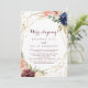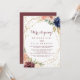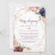 Cette carte de réception géométrique et rustique en or parties scintillant elopement est parfaite pour une soirée post elopement moderne. Le design se compose de l'aquarelle dessinée à la main violet, marine, rousse, bordeaux, fleurs marines, parties scintillant feuille verte et dorée sur un cadre géométrique élégant. Les cartes RSVP sont vendues séparément.