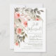 Cartes d'invitation pour réception après mariage uniquement avec dos photo en option - Élégant bouquet floral aquarelle peint à la main avec roses corail rose blush et verdure de jardin botanique. Accents de calligraphie manuscrite tendance avec champs de modèle à modification facile. Le choix de la police, la mise en page et les couleurs peuvent être modifiés selon le style et le goût.