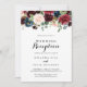 Cette invitation de réception de mariage automnal rustique moderne calligraphié est parfaite pour une fête simple après une fugue amoureuse. Le design présente des fleurs peintes à la main en burgundy, rouge, marine, bleu et rose radieuses et gracieuses, inspirant la beauté naturelle.