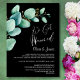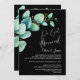 Invitez vos amis et vos proches à votre réception post-mariage avec cette invitation noire aux feuilles d'eucalyptus vert aquarelle pour célébrer votre mariage récent.