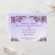 Les lilas sont le thème de cette invitation de réception de mariage. Le devant présente des grappes de lilas roses et mauves sur un fond violet. Le dos comporte plus de lilas. Tout le texte peut être personnalisé pour répondre à vos besoins.