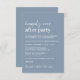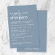 Invitation bleu poussiéreux minimaliste moderne pour une réception après votre événement ou mariage privé avec "Happily Ever After Party" dans un mélange d'un script blanc contemporain et de lettres blanches audacieuses, votre invitation personnalisée, et vos noms dans un script signature.